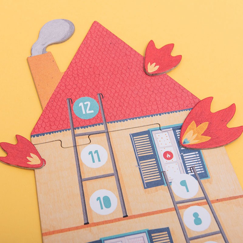 A cooperative board game for children aged 4 and up where we have to help the firemen rescue a kitten from the fire! In pocket format for travelling.