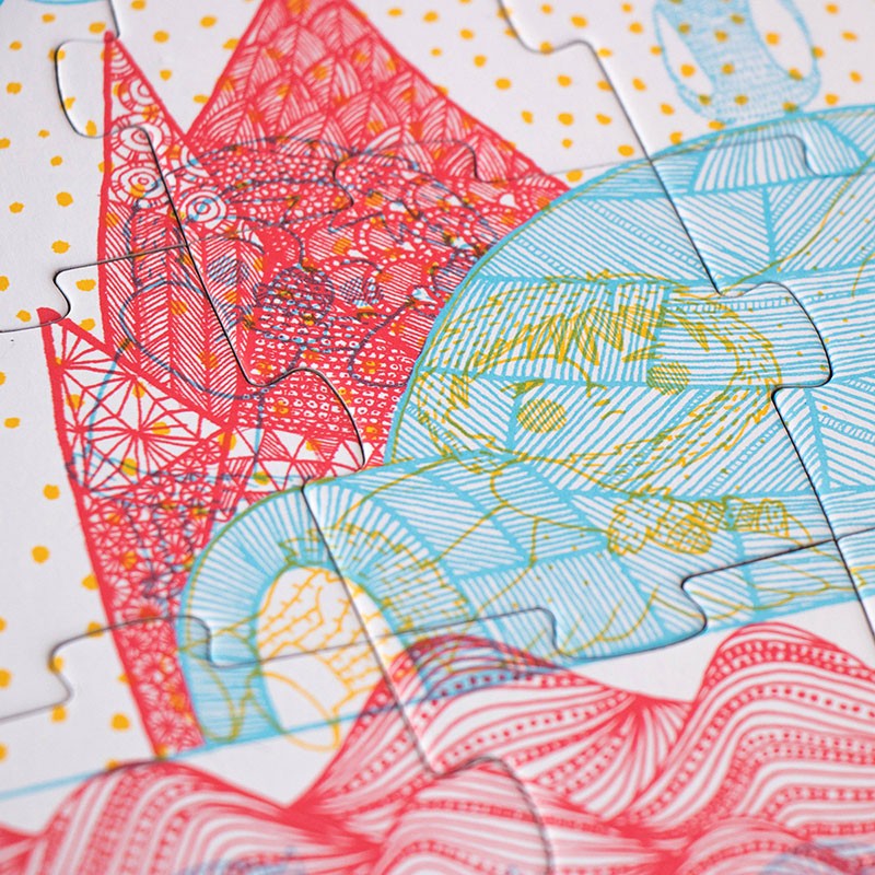 Inside the box you will find 4 puzzles of 9, 12, 16 and 20 pieces. In this way the child can gradually increase the level of difficulty. The set is complemented by two colored lenses (one red and one blue). Once the puzzle is assembled and looking through the lens, we will discover hidden characters and small surprises.