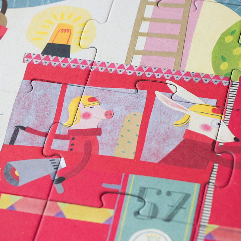 A puzzle of firefighters, always ready to put out any fire! 36 pieces made of recycled cardboard in Europe. A sustainable toy.
