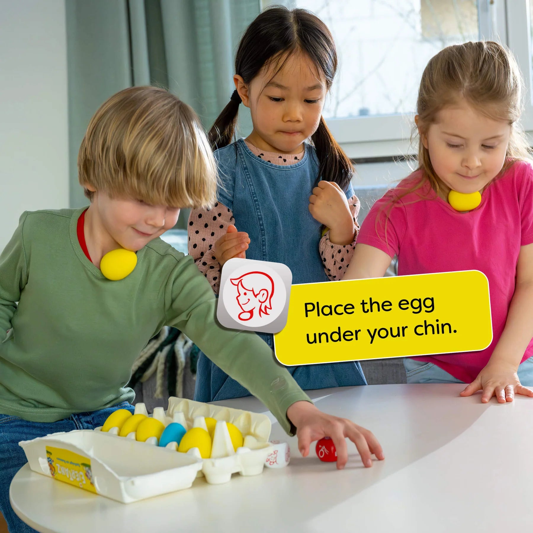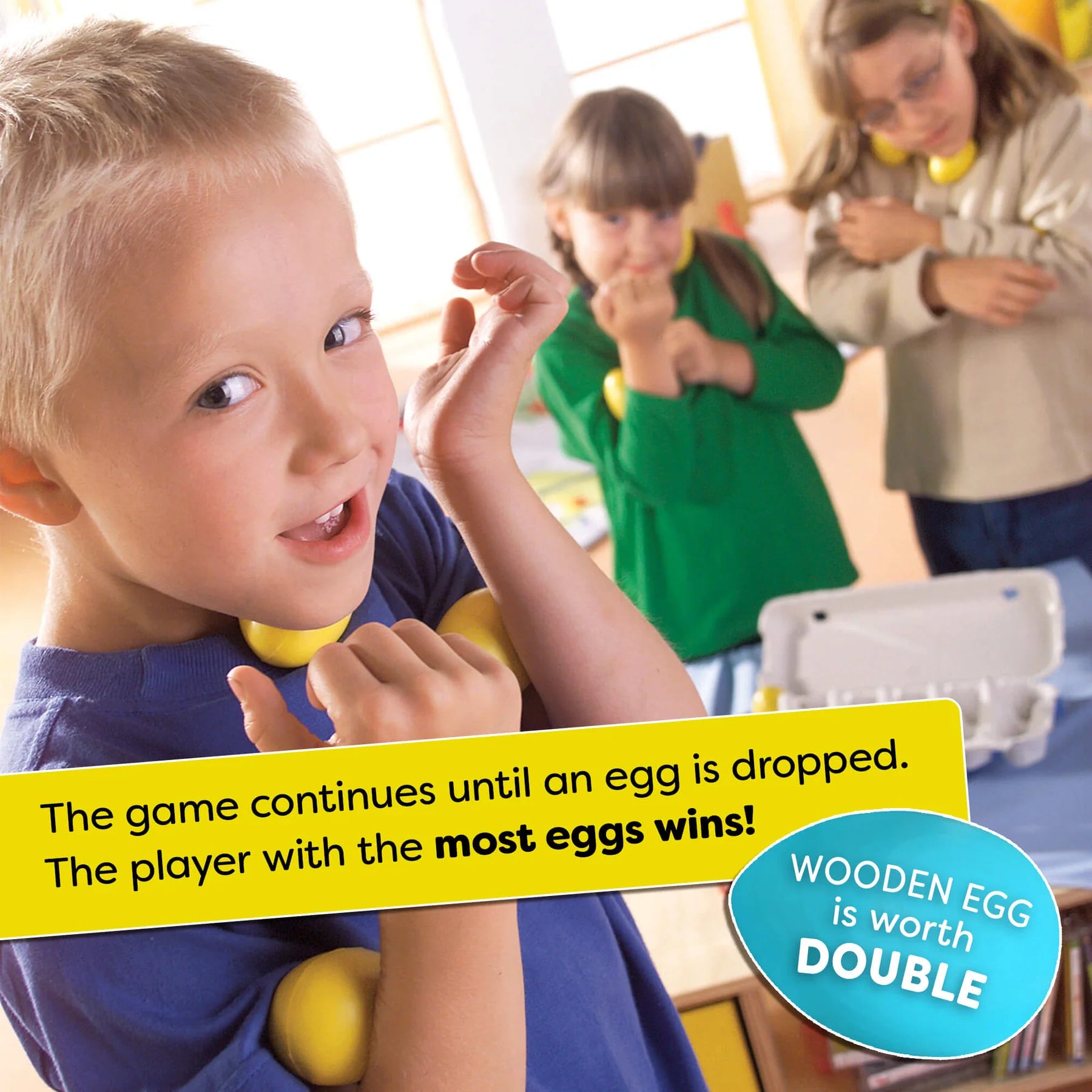 - What’s in the Box: 9 rubber eggs, 1 wooden egg, 2 dice, rulebook with game instructions