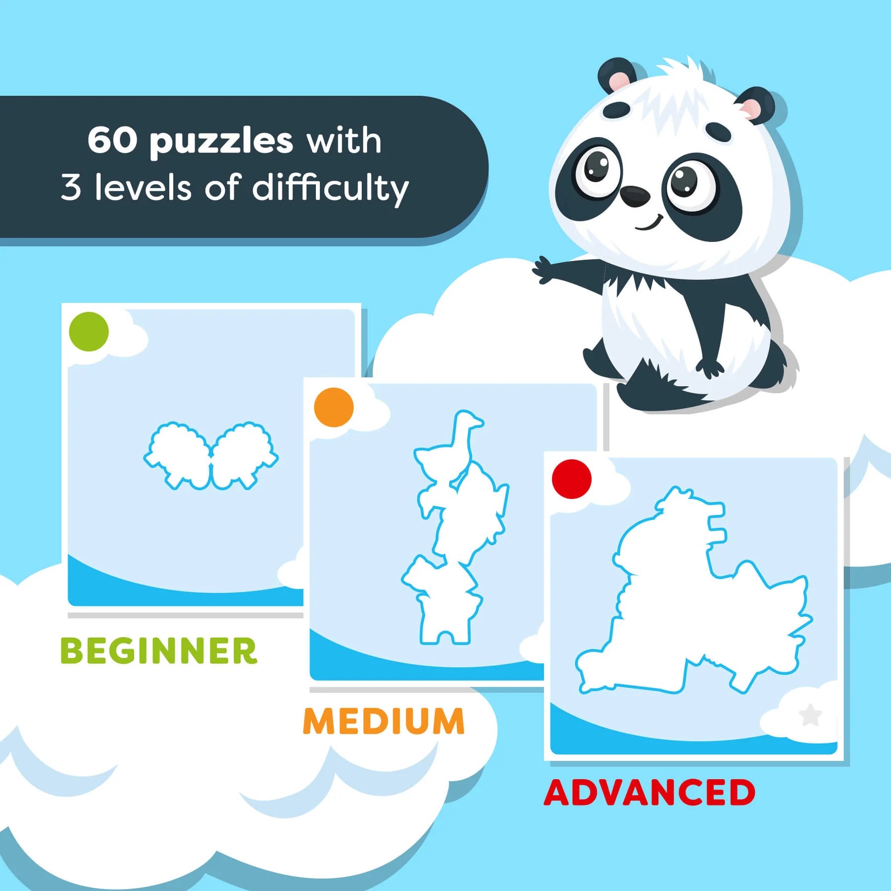 - Grows with Kids: 60 puzzles progress from easy to advanced, perfect for years of repeat play.