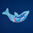Dive into the ocean depths! Among calm waves and a colorful underwater background live magical sea creatures: the starfish stretching calmly, the seahorse riding the waves, the dolphin jumping joyfully, the shark swimming majestically, the clownfish playing among the corals, and the big whale guiding its way.