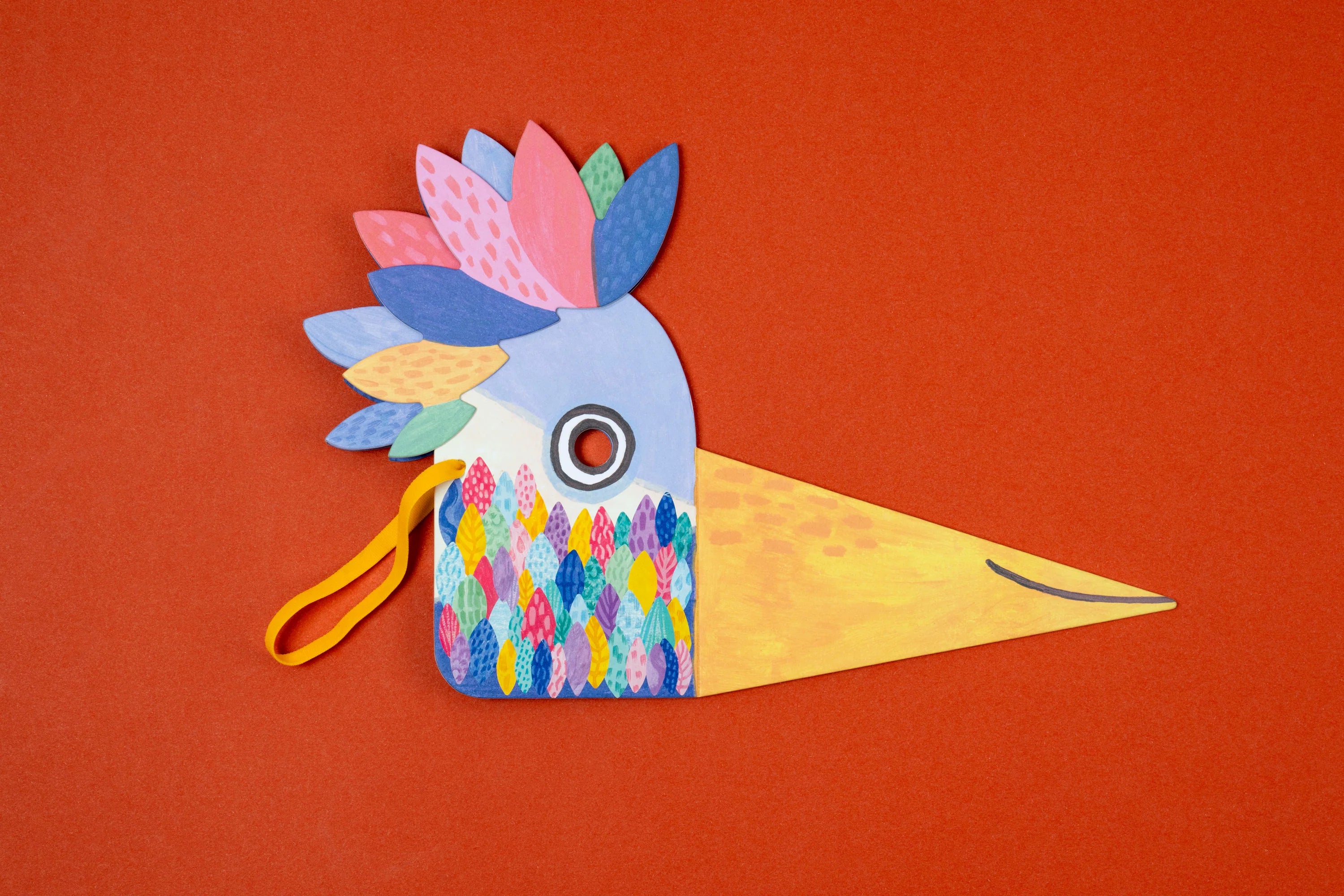 Flap, flap! Spread your wings and let your imagination soar! Decorate your bird mask with colorful stickers and transform into the wildest and most creative creature. Feathers, shapes, and fantasy… everything is in your hands!