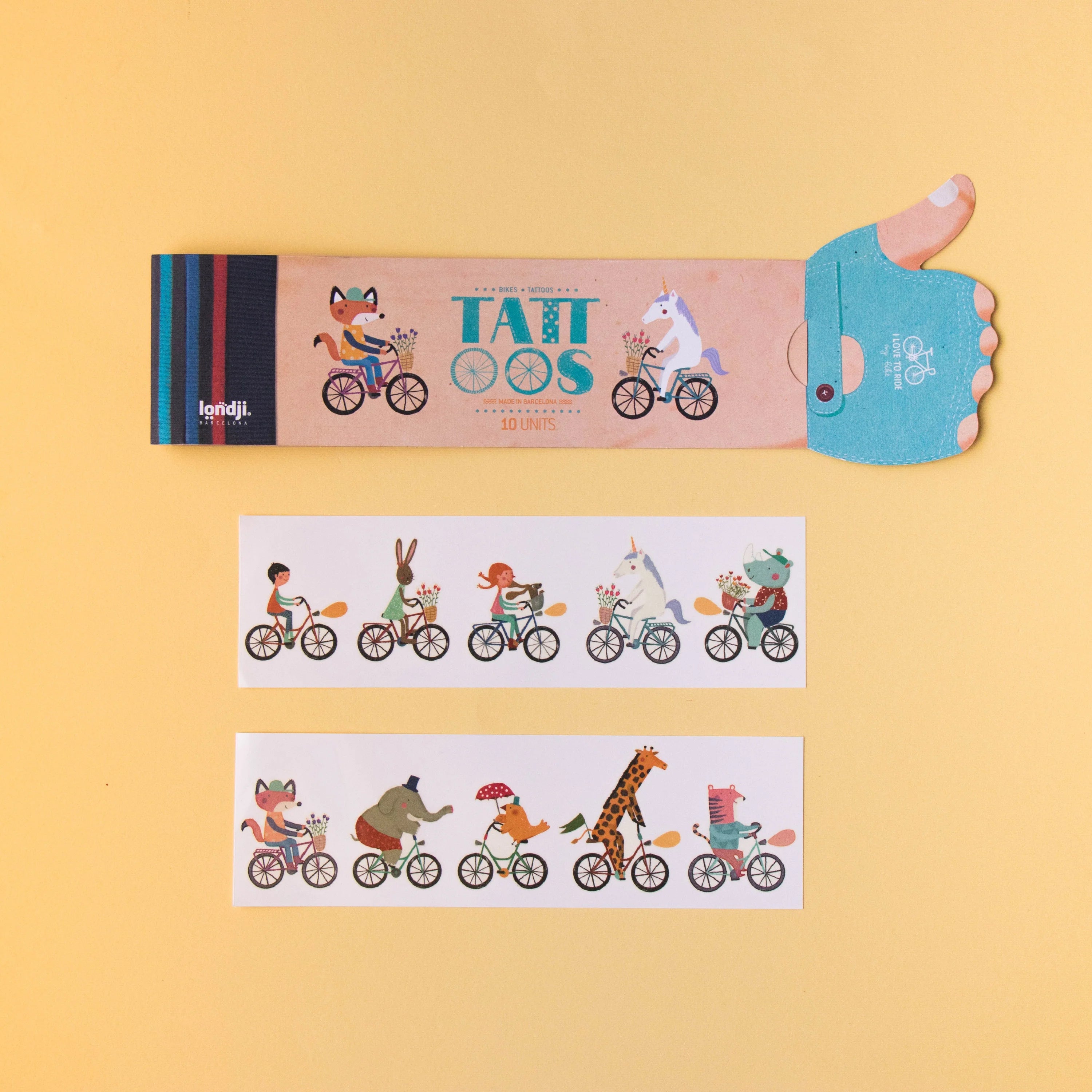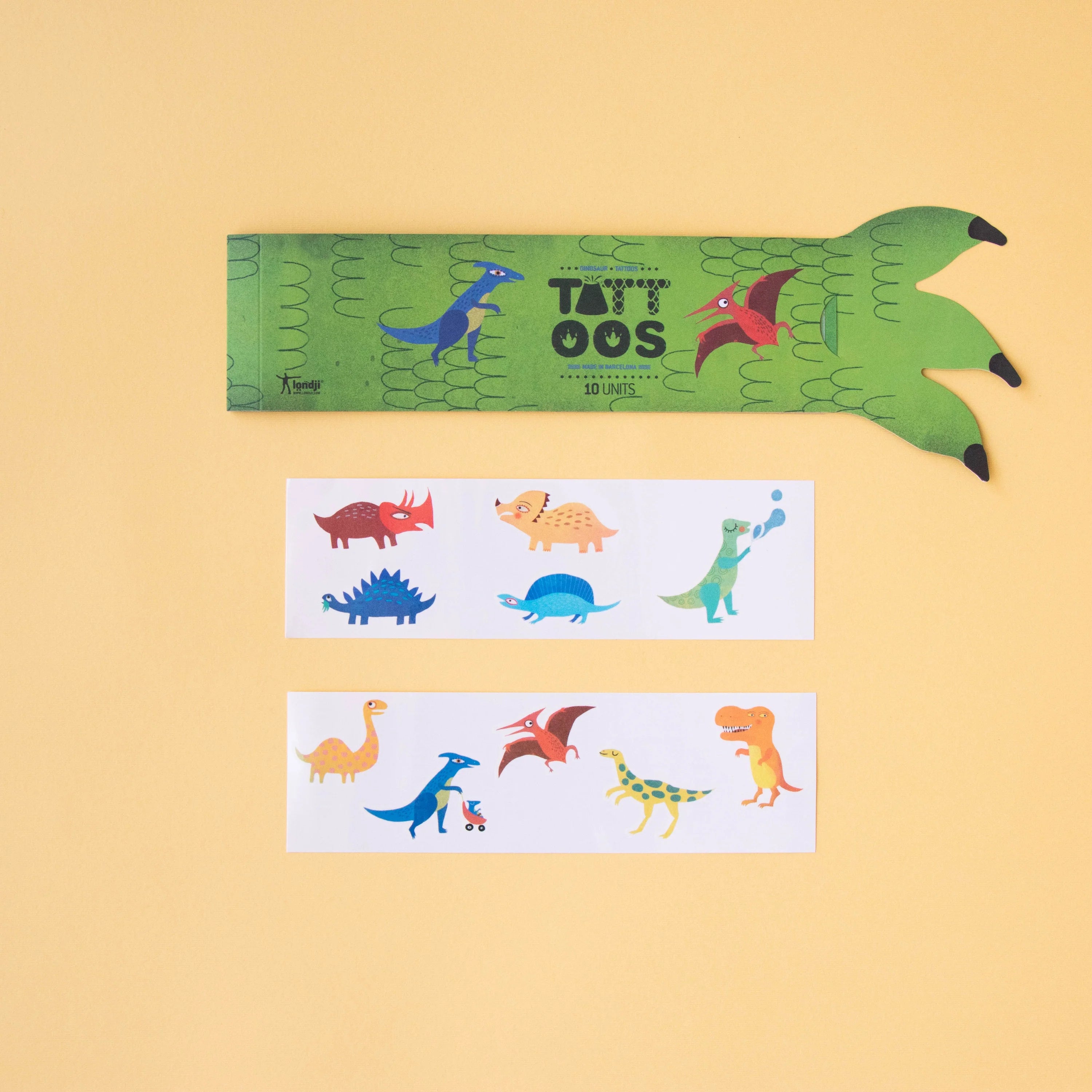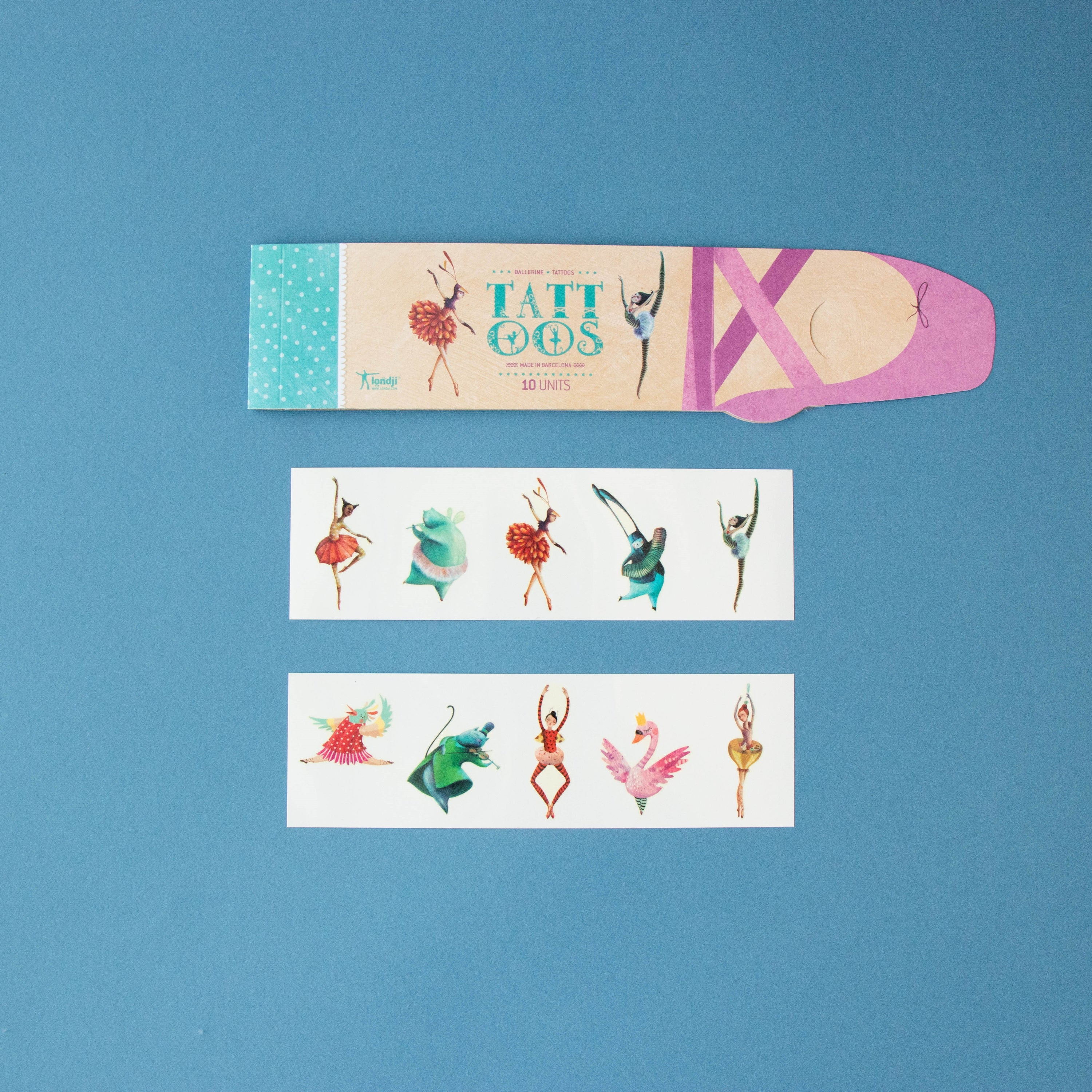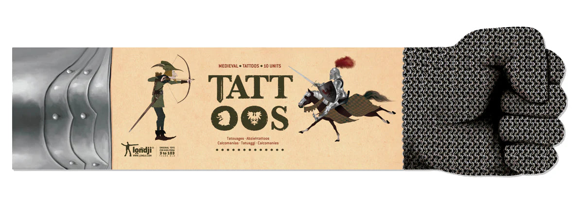 10 Tattoos range in size. Made in Barcelona by Londji. They are safe, non-toxic and we use eco-friendly ink made from soya beans.