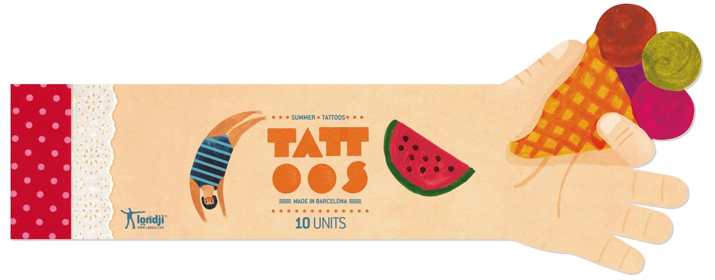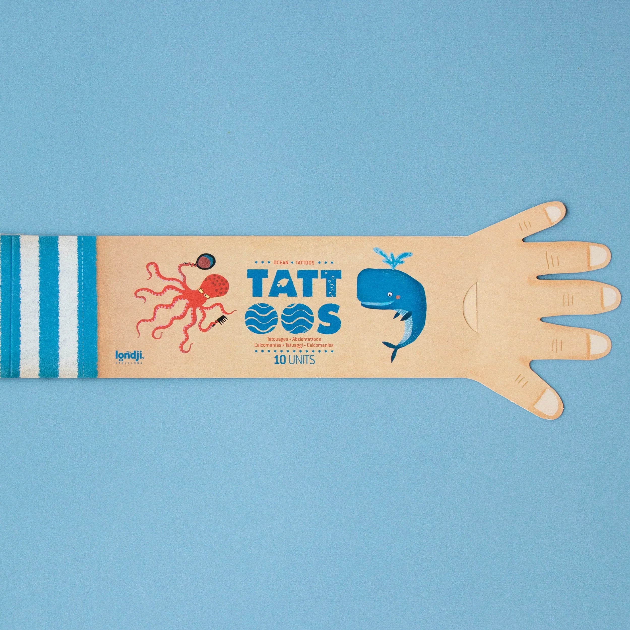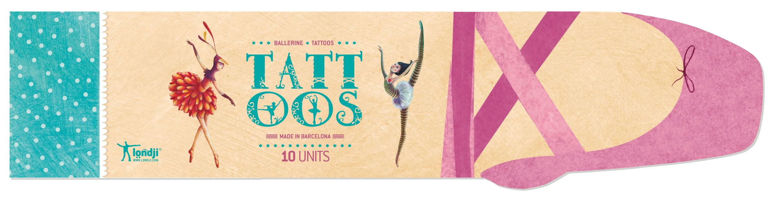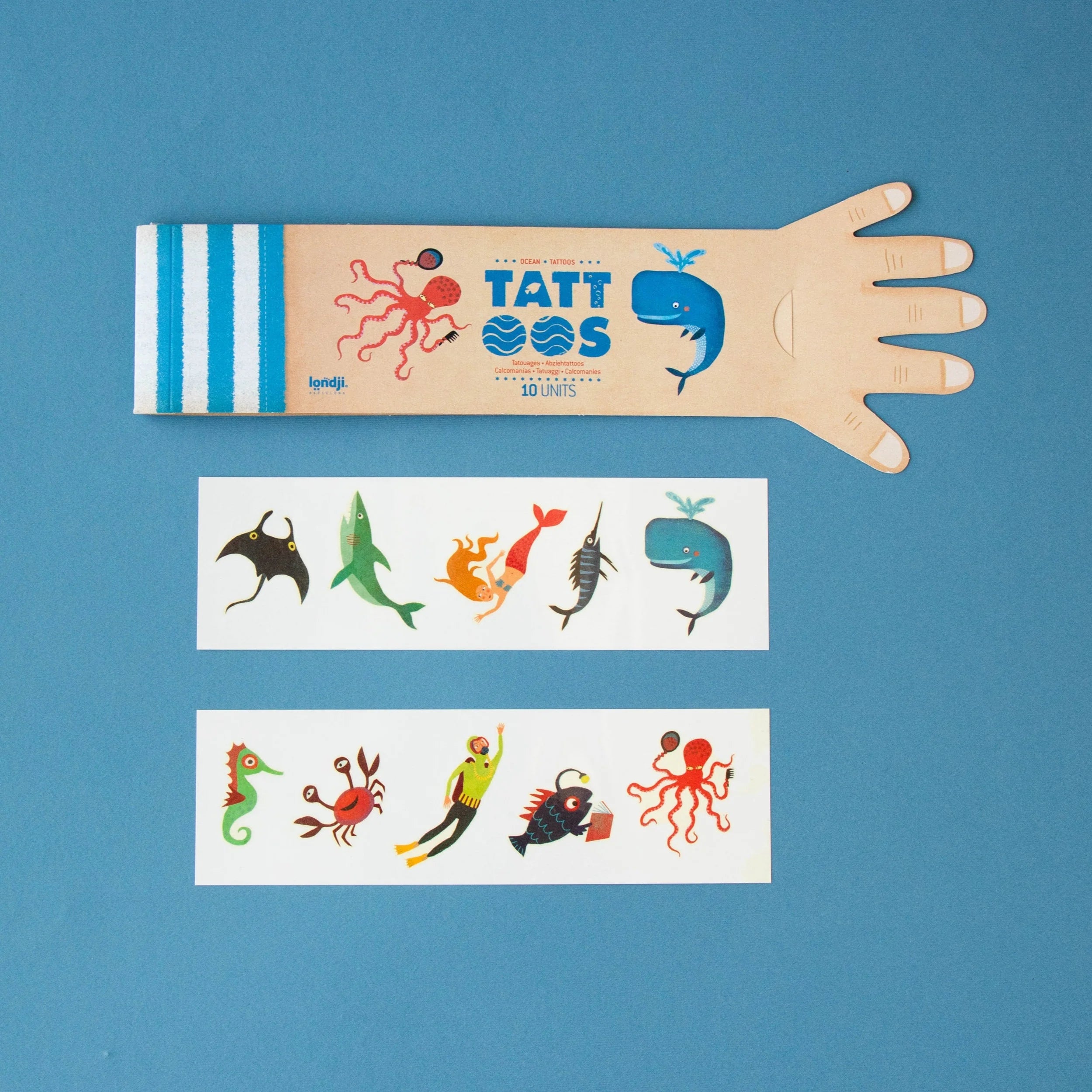 10 Tattoos range in size. Made in Barcelona by Londji. They are safe, non-toxic and we use eco-friendly ink made from soya beans.