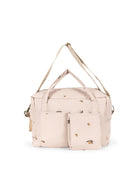 Water-repellent and functional changing bag. Various sized elasticized inner pockets, including an insulated bottle holder, make storing and organising essentials simple. On the outside there are two pocket compartments, one especially designed for wet wipes. The bag includes a removable padded changing mat. The bag has a large storage capacity and can also be used as a weekend bag. It has a removable and adjustable shoulder strap option. All you need bag closes with a zipper and has D-rings on each side that attach to the stroller handles or frame with pram hooks. The quality is both soft and dirt repellent. A durable must have for all parents.