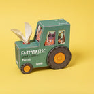 A 36-piece farm animal puzzle with a tractor-shaped box, including a 40-card observation game to look, search, imagine, and have fun!