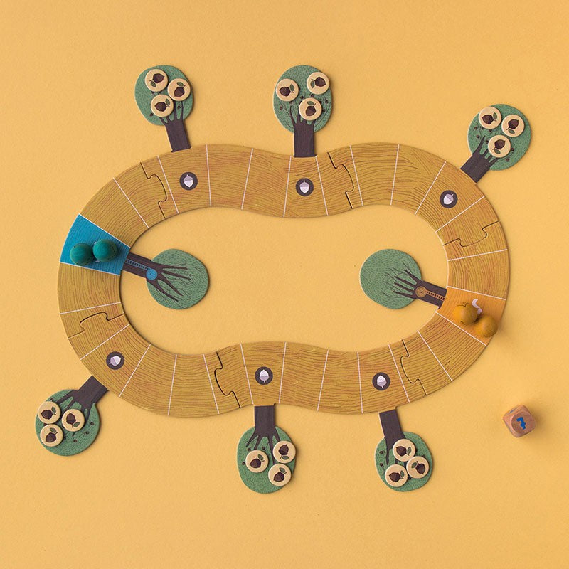 In this strategy game, the family of squirrels that manages to bring the most acorns to their burrow will be the winner. A sustainable and proximity game.