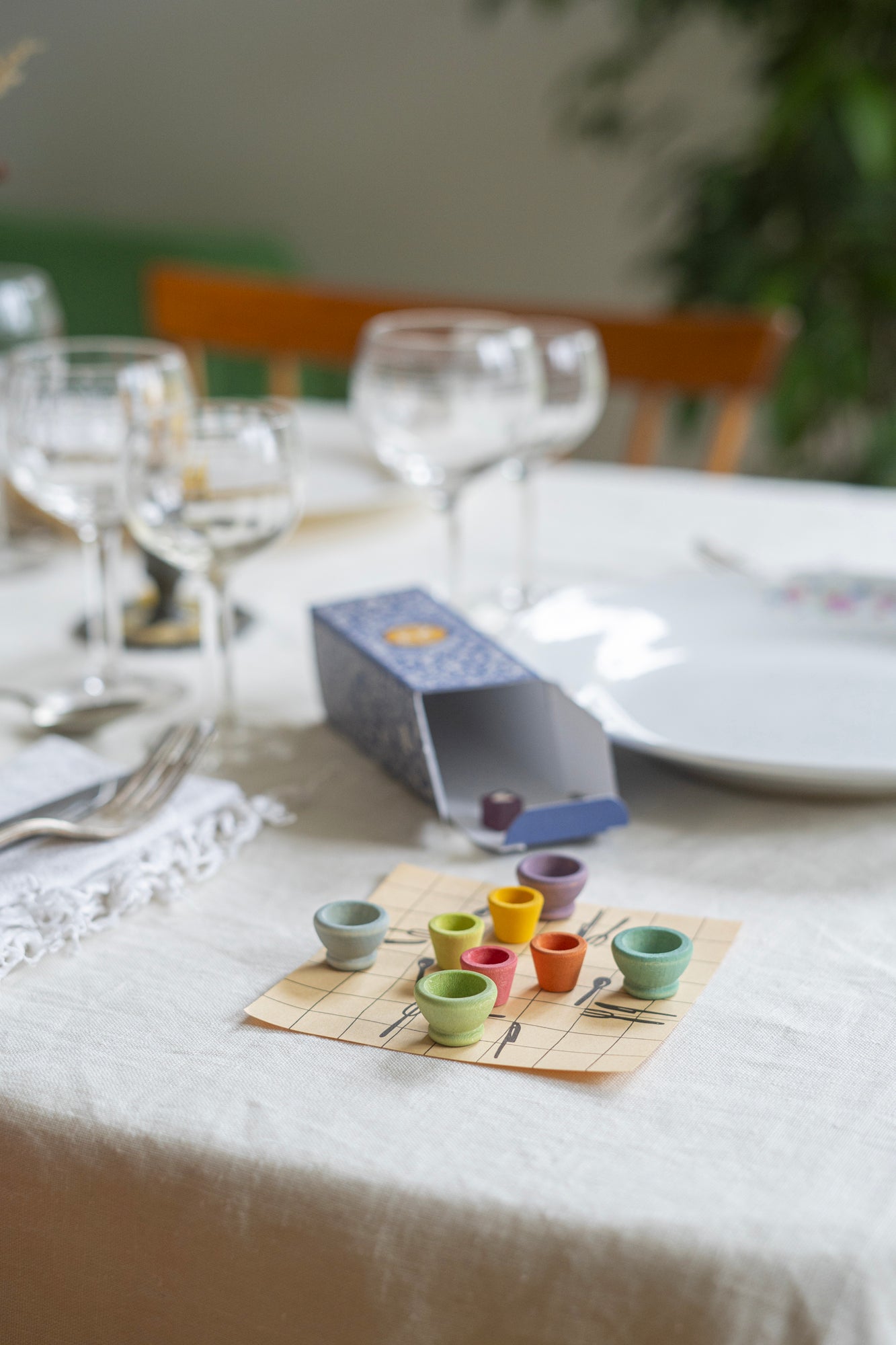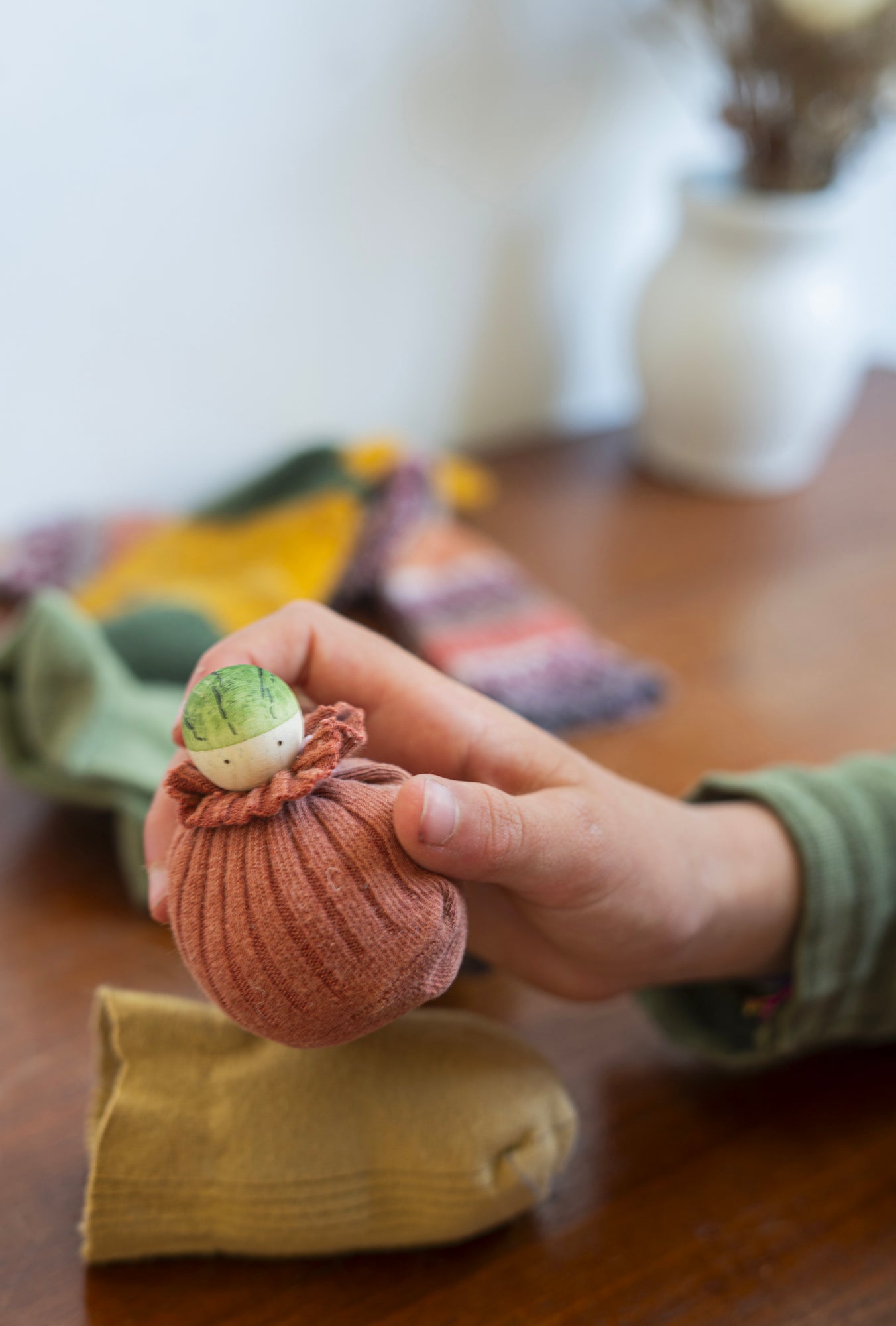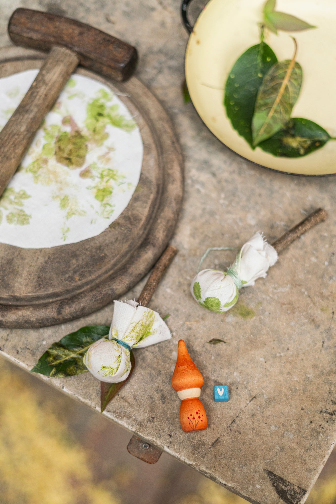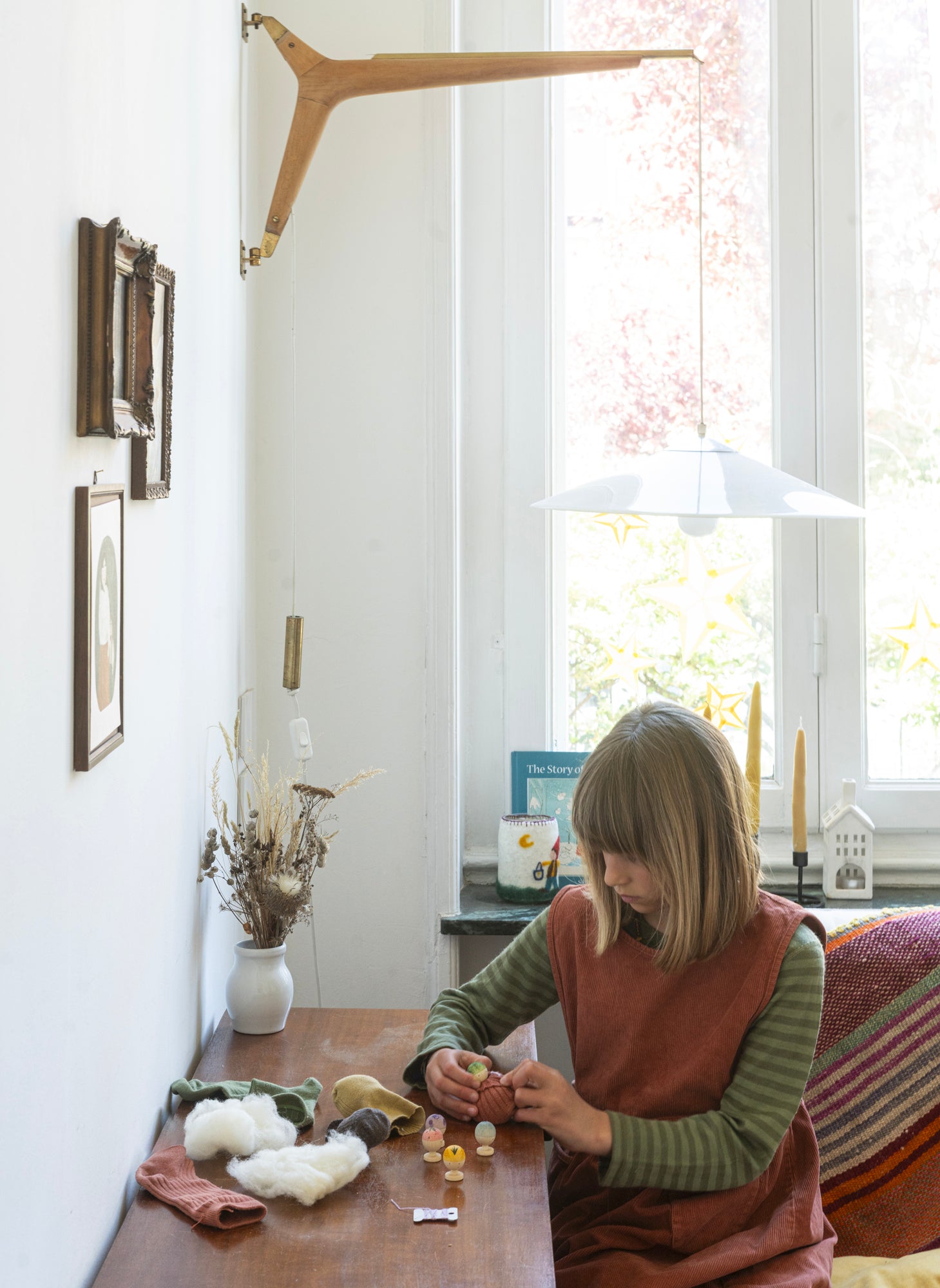 More than 150 pieces in different materials: wood, fabric, threads, wool, and much more. The box also includes a book with invitations to play, craft and share time together.