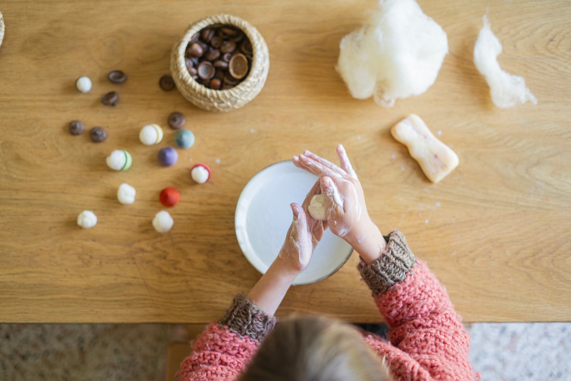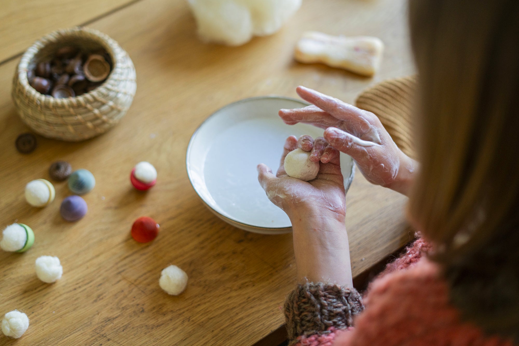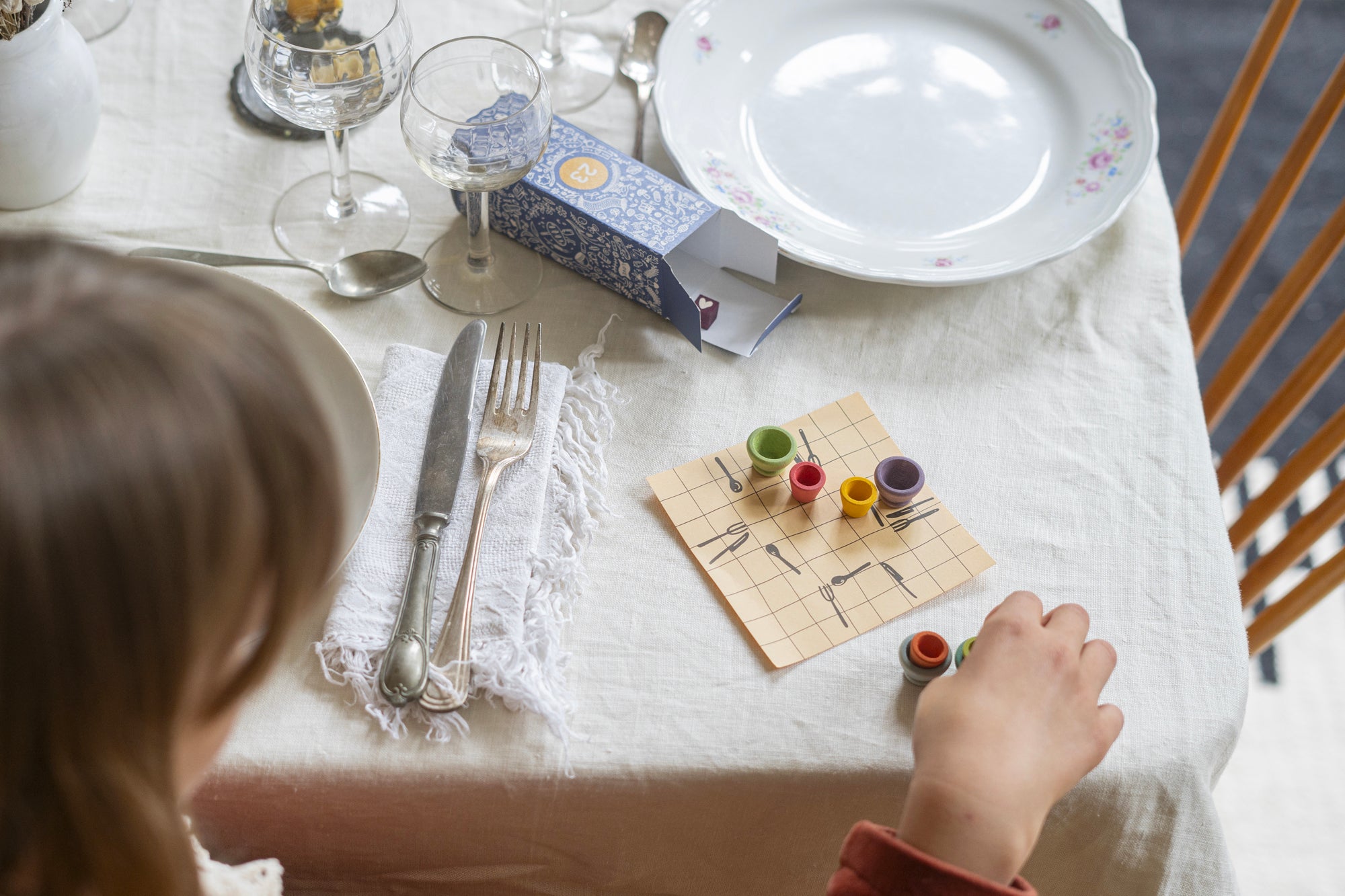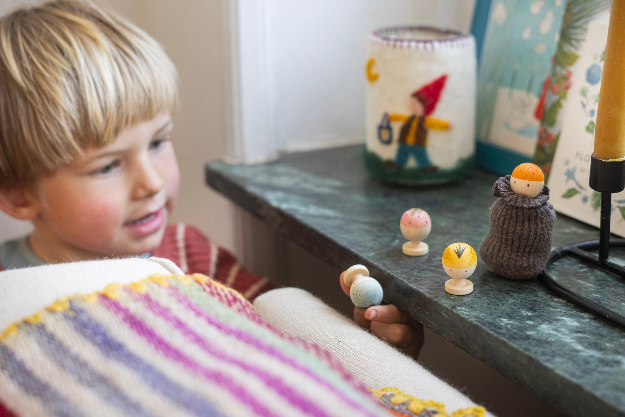 More than 150 pieces in different materials: wood, fabric, threads, wool, and much more. The box also includes a book with invitations to play, craft and share time together.