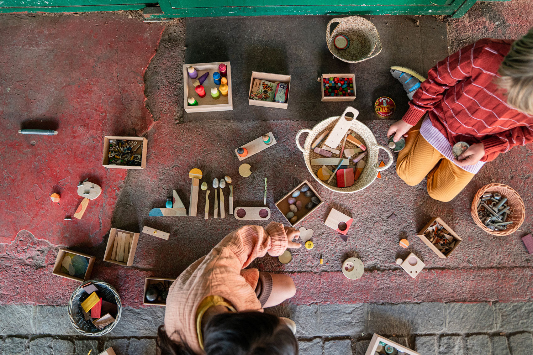 GRAPAT provides material without instructions, open-ended and autonomous play. Their only premise is to let children play, slowly, without time limits. Grapat hand crafts materials that encourage, invite and stimulate the creation of invented little worlds. Grapat is made following traditional processes, in the old way, with thick soft raw materials, natural dyes which let the wood veins be seen and vibrant coloured waxes and oils that slightly shine. The products are painted by hand, homemade, surrounded by nature and many children nearby that inspire the makers daily.