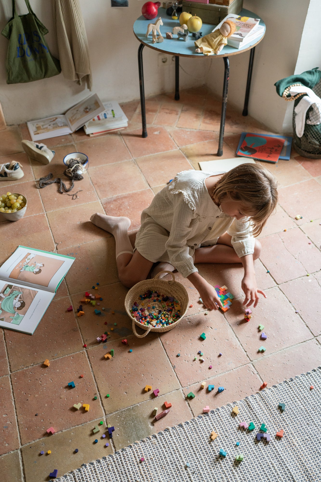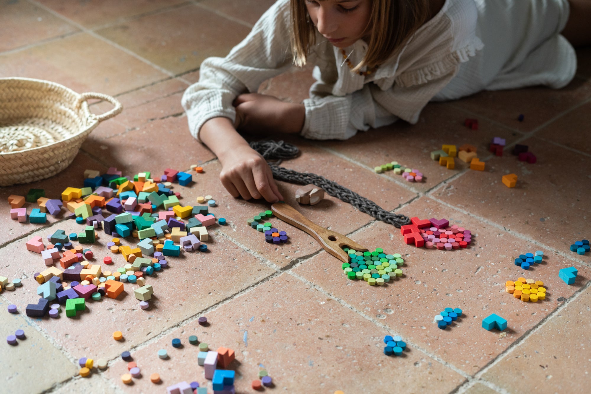 GRAPAT provides material without instructions, open-ended and autonomous play. Their only premise is to let children play, slowly, without time limits. Grapat hand crafts materials that encourage, invite and stimulate the creation of invented little worlds. Grapat is made following traditional processes, in the old way, with thick soft raw materials, natural dyes which let the wood veins be seen and vibrant coloured waxes and oils that slightly shine. The products are painted by hand, homemade, surrounded by nature and many children nearby that inspire the makers daily.