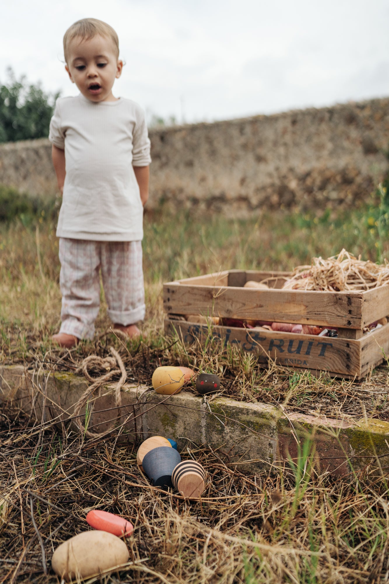 GRAPAT provides material without instructions, open-ended and autonomous play. Their only premise is to let children play, slowly, without time limits. Grapat hand crafts materials that encourage, invite and stimulate the creation of invented little worlds. Grapat is made following traditional processes, in the old way, with thick soft raw materials, natural dyes which let the wood veins be seen and vibrant coloured waxes and oils that slightly shine. The products are painted by hand, homemade, surrounded by nature and many children nearby that inspire the makers daily.