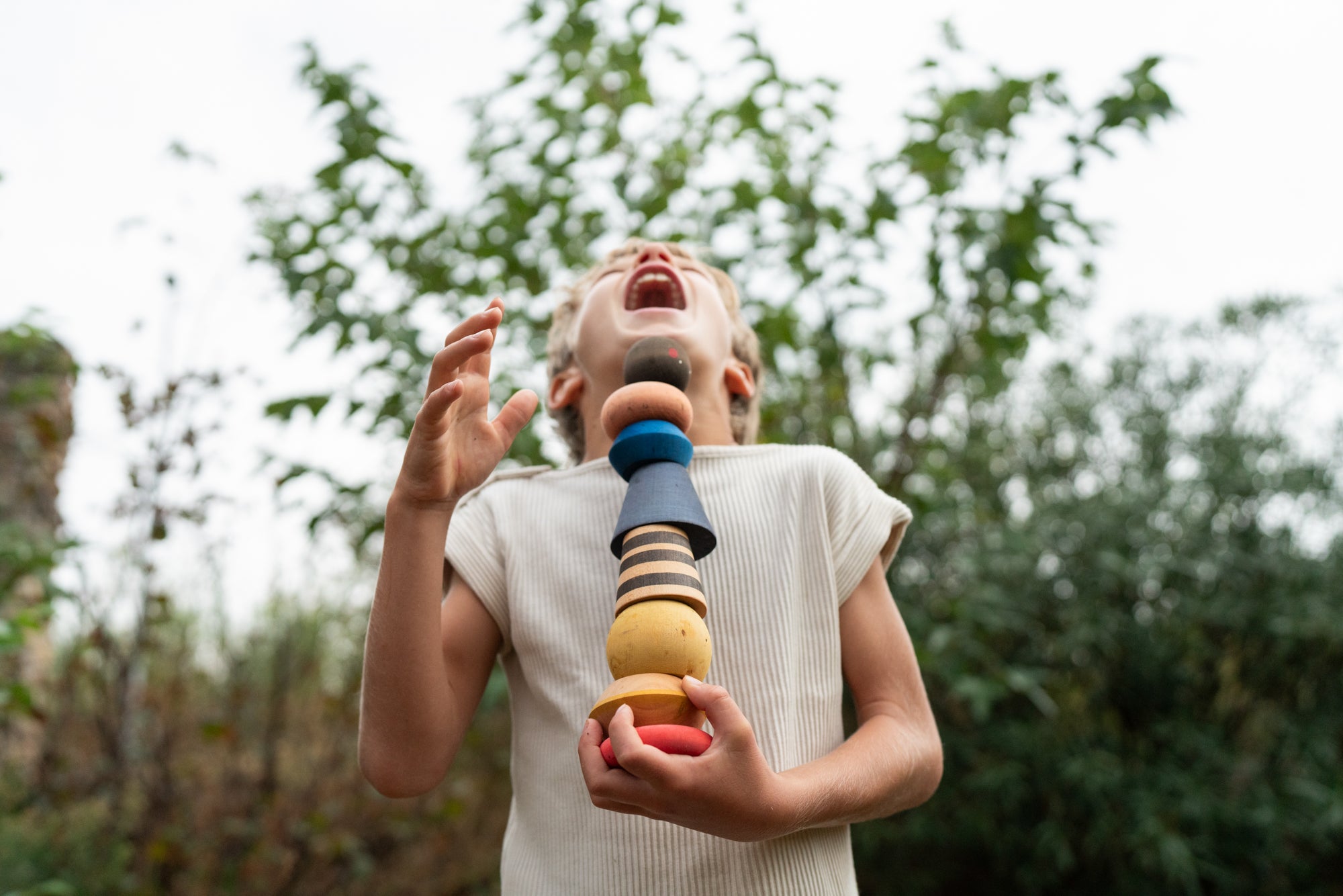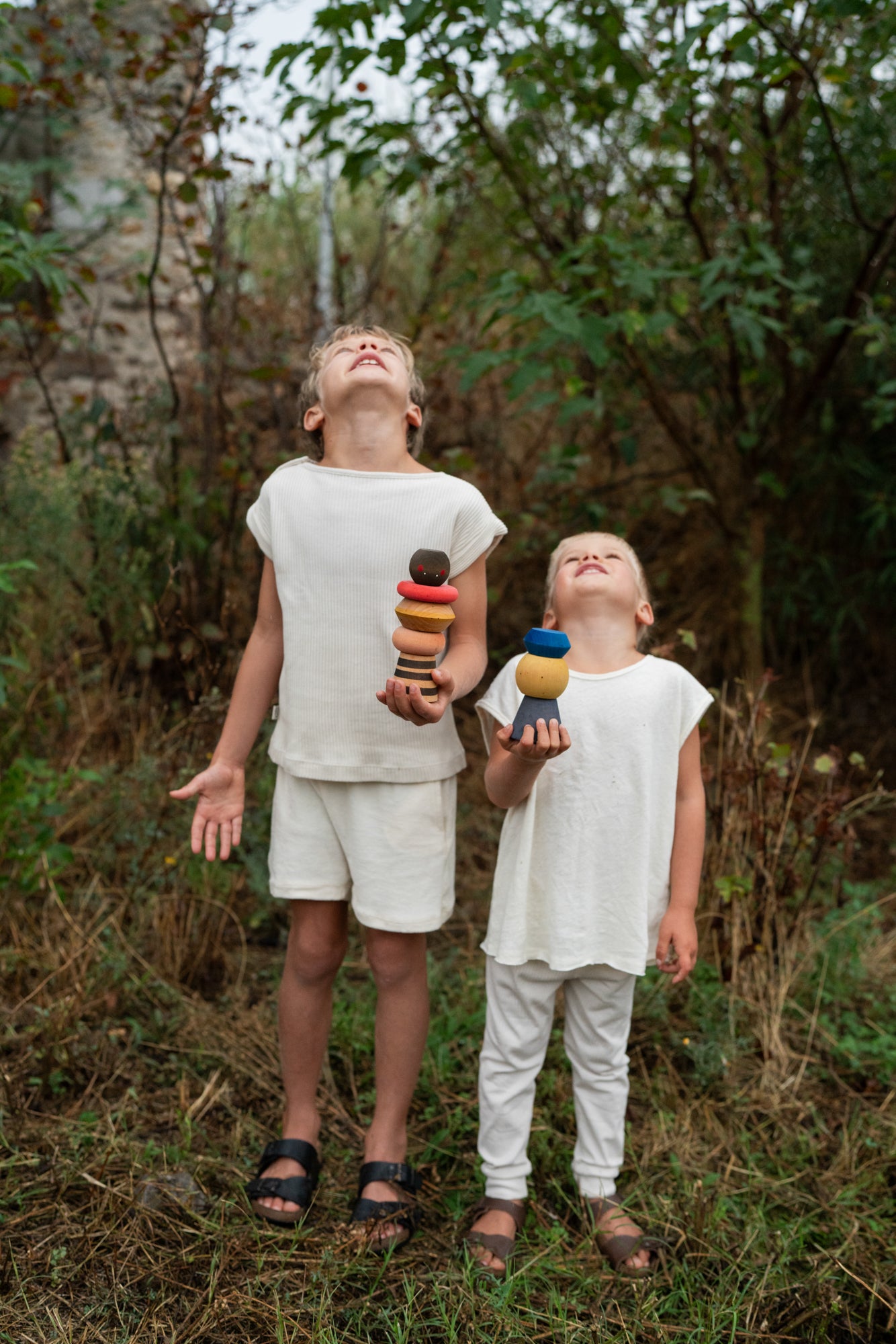 Endless combinations for this stacking tower! Full of colour and beautifully handcrafted there’s fun in every movement. Have you seen its little eyes? Feel free to create faces and characters!