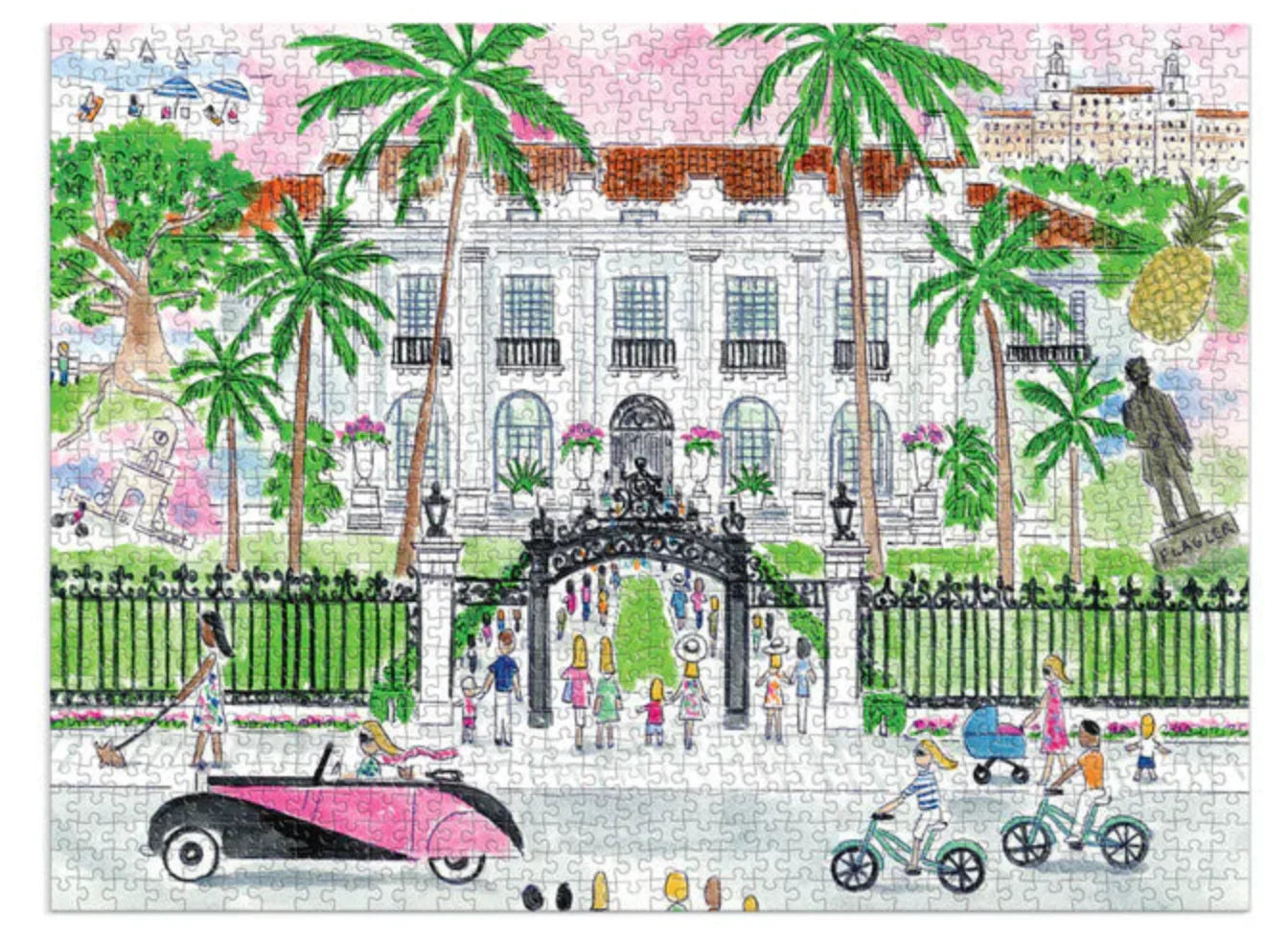 Award-winning designer, illustrator, and creative director Michael Storrings highlights a perfect day in Palm Beach featuring the Flagler Museum in Michael Storrings A Sunny Day in Palm Beach 1000 Piece Puzzle. Galison puzzles are packaged in matte-finish sturdy boxes, perfect for gifting, reuse, and storage. An insert of the full puzzle image is also included.