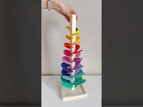 This is a high-quality wooden 19" tree tower. Not only is it attractive and pleasant to look at but it's also very fun to play with. Just drop the marbles from the top to hear a wonderful array of sounds as each marble descends down the colourful handmade tree. Includes six marbles. It's just whimsical music toy!