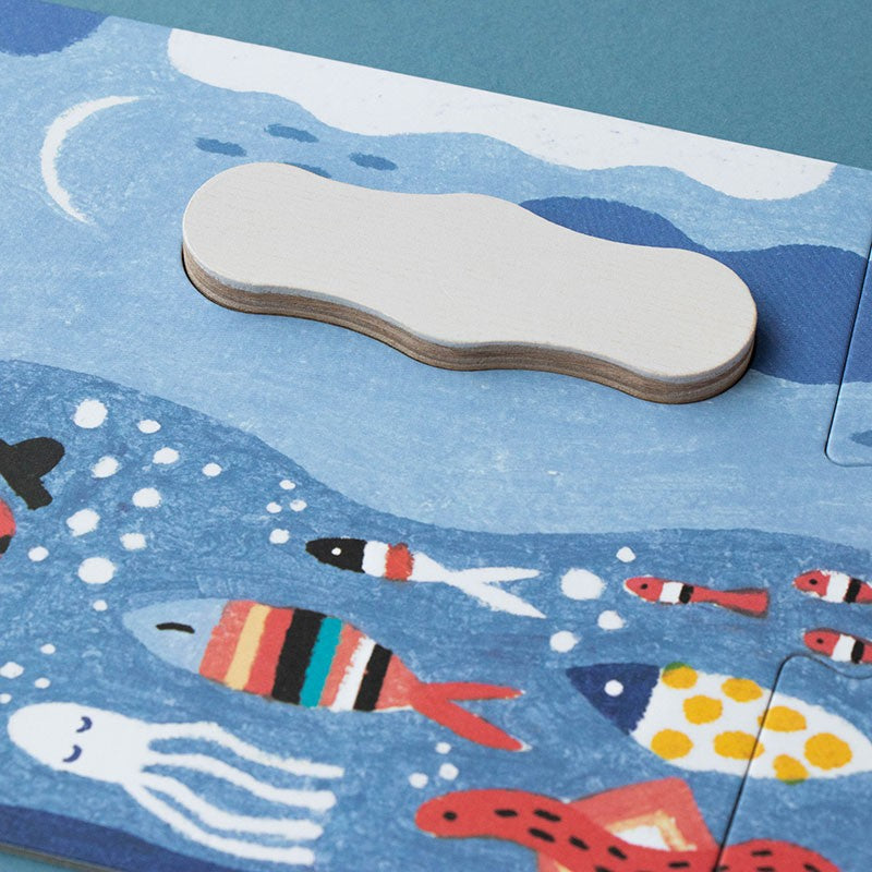 Is it the moon or a boat, a cloud or a caterpillar, a fish or a drop of water? A game for the imagination! Assemble the puzzles and insert the wooden pieces.