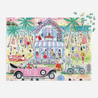 Transport yourself to a sun-drenched 1920s coastal retreat with this 1000-piece puzzle illustrated by Michael Storrings. The charming seaside composition features elegantly dressed beachgoers enjoying the sand, surf, and pastel beach house. Soft-colored palms frame the landscape, a classic automobile adds nostalgic flair, and an inviting outdoor gathering captures the leisurely spirit of the era. Storrings' meticulous illustration style brings every period detail to life, from fashion to architecture, creating an engaging puzzle experience rich with visual storytelling.