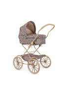 Vintage style doll pram designed with four large wheels made in EVA material for extra stability. Features quilted printed fabric and a mattress made in 100 percent organic cotton. Designed with a softly cushioned storage basket under the lift. The frame is made of metal with spongy soft handles. The doll pram comes fully assembled and is easy to fold and store.