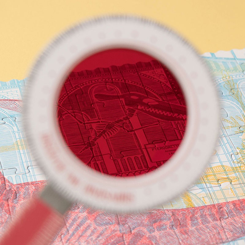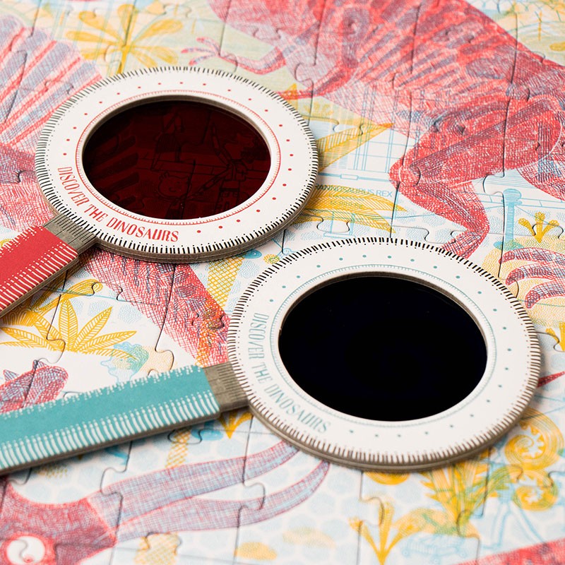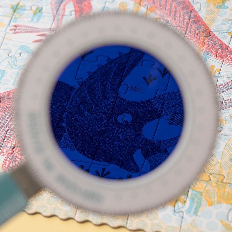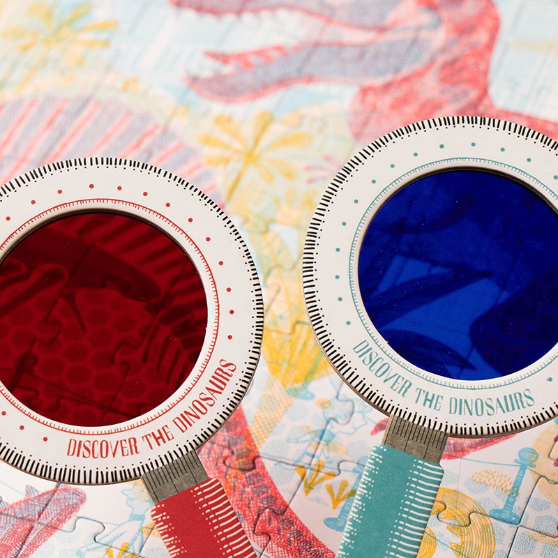A very original puzzle, with a red magnifying glass you will travel to the Jurassic period and with the blue magnifying glass you will discover the museum.