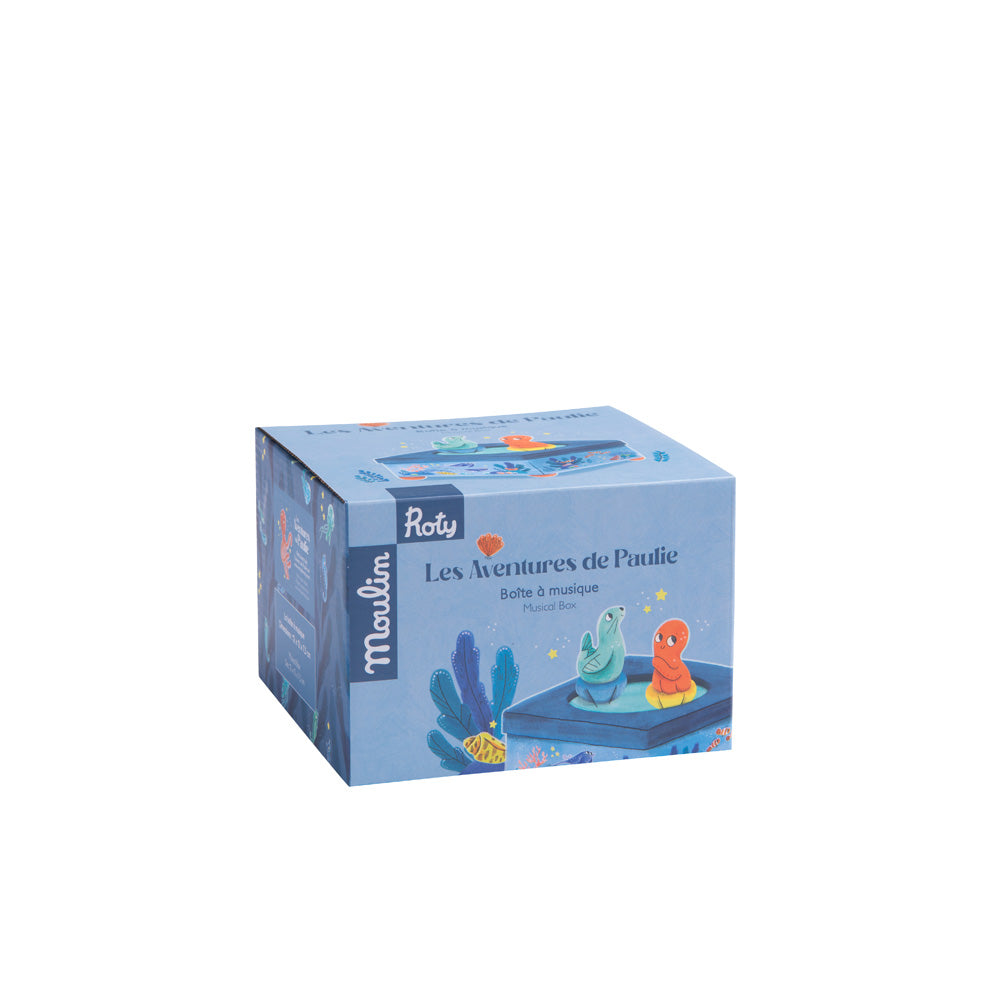 Welcome to the ocean with this colourful music box inspired by the deep sea. Paulie the octopus and his friend Emilie the sea lion spin and dance around the dance floor, lulling baby to sleep.