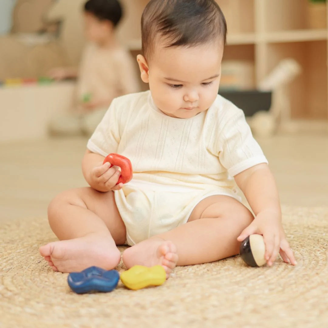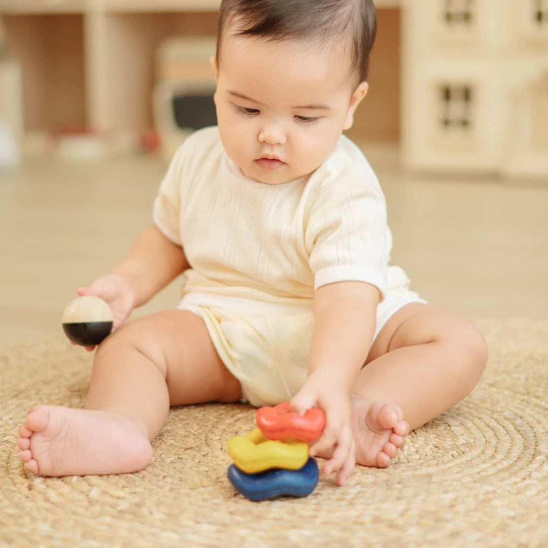 • Sustainably made in Thailand using chemical-free rubberwood, non-toxic glue, organic pigments, and water-based dyes. Set Includes: 1 ball and 3 wavy rings.