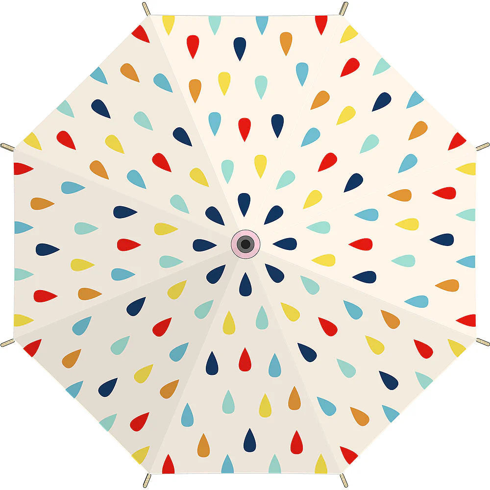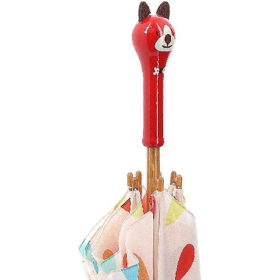 Bienvenue Lucien, chien espiegle doue en betises, decline ici en parapluie en bois fabrique dans notre atelier jurassien. Plic, ploc fait la pluie en tombant sur la jolie toile coloree.