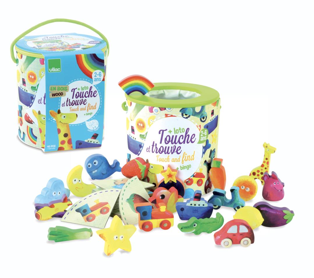 Wooden feel and find game by VILAC includes 41 wooden pieces.