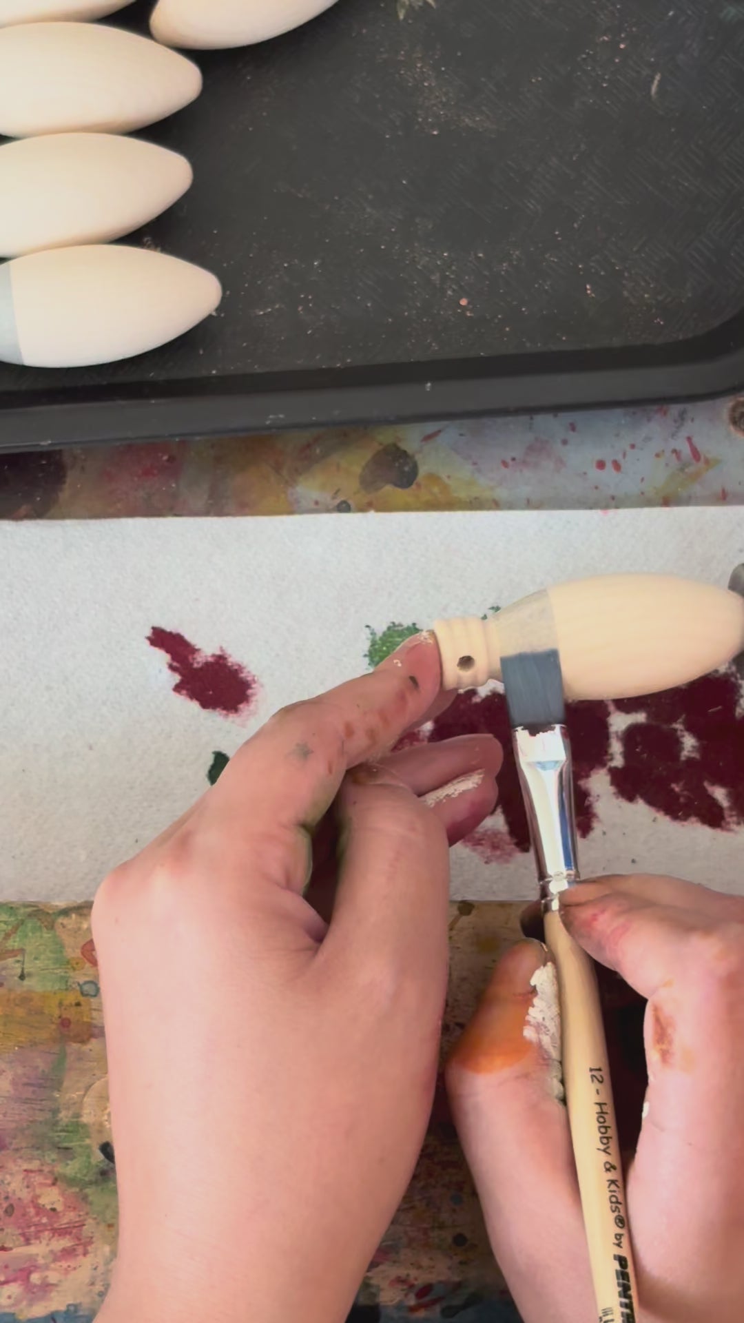 3 lamp-shaped pieces, painted by hand. Includes thread for hanging.